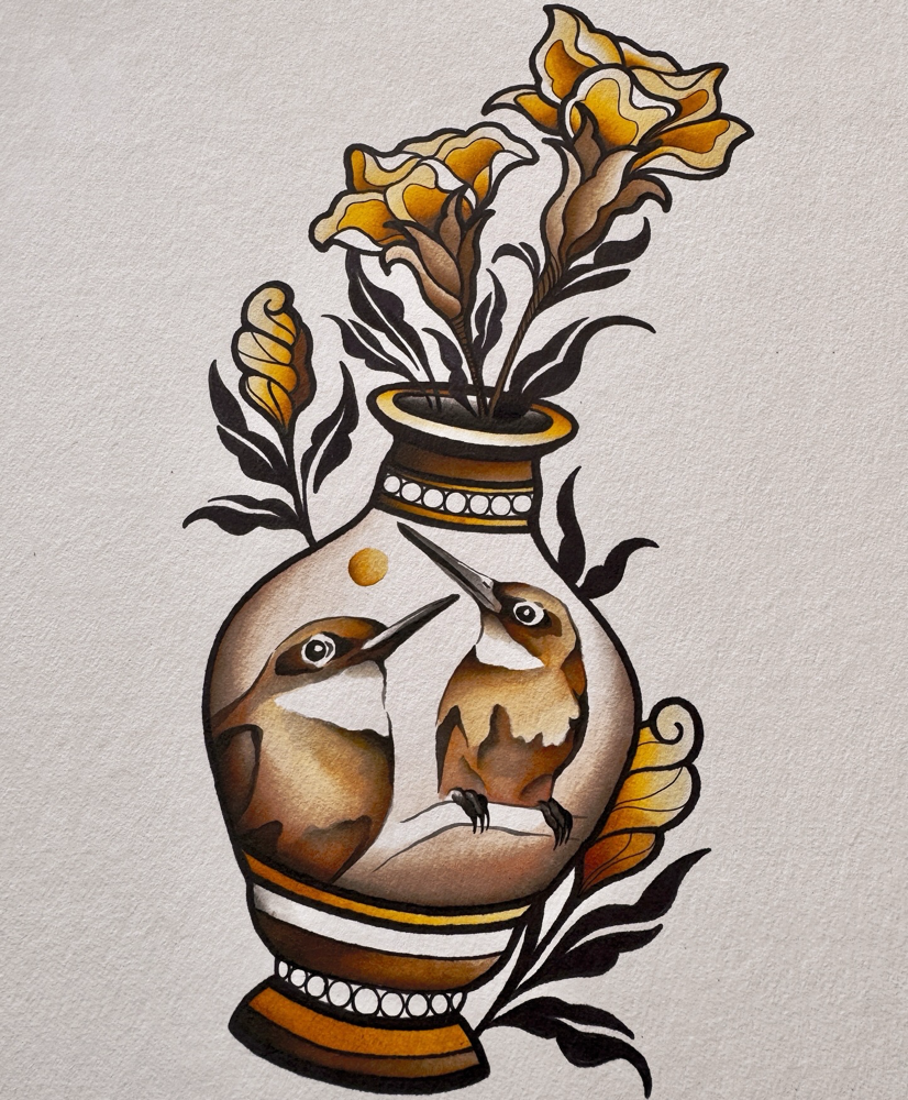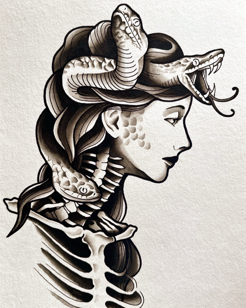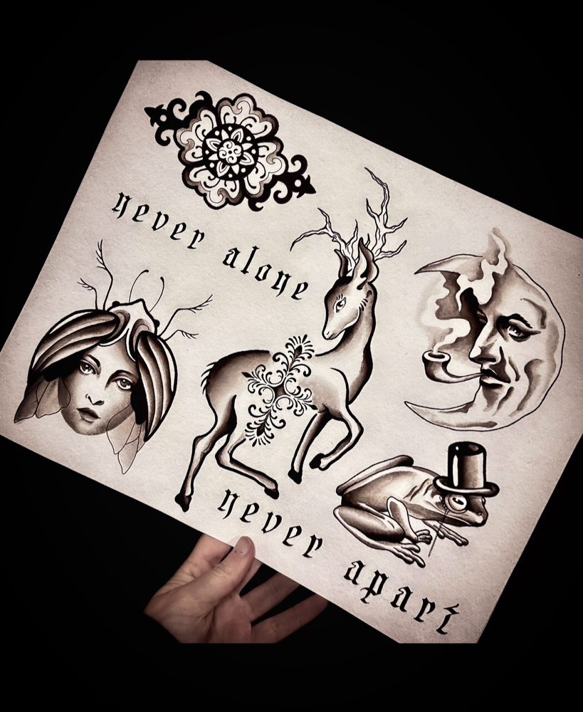 Hier findest du aktuelle Motive, die ich gern auf Haut umsetzen möchte. Mehr Arbeiten, Kunst und Tätowierungen findest du auf meinem Instagramprofil.